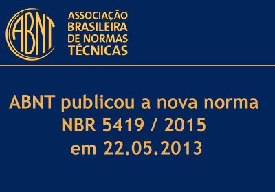 A nova norma NBR5419:2015 entrou em vigor no dia 22/06/2015. Ela esta dividida em 4 partes: Parte 1: Princípios gerais – 67 paginas Parte 2: Gerenciamento de risco – 104 paginas Parte 3: Danos físicos a estruturas e perigos à vida – 51 paginas Parte 4: Sistemas elétricos e eletrônicos internos na estrutura – 87